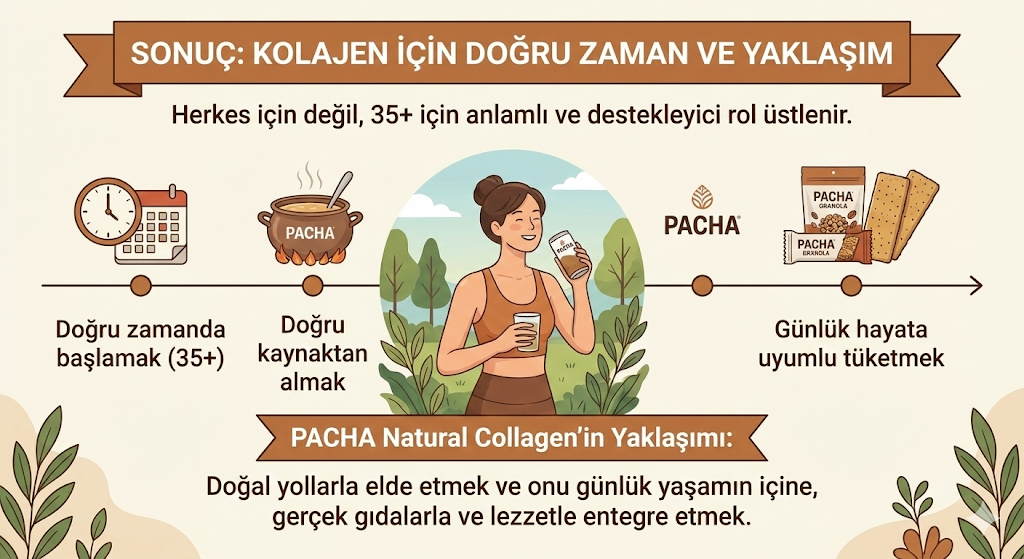Önemli olan, kolajeni “herkes için her zaman gerekli” bir ürün gibi deÄŸil; belirli dönemlerde anlam kazanan bir yapı taşı olarak deÄŸerlendirmektir.