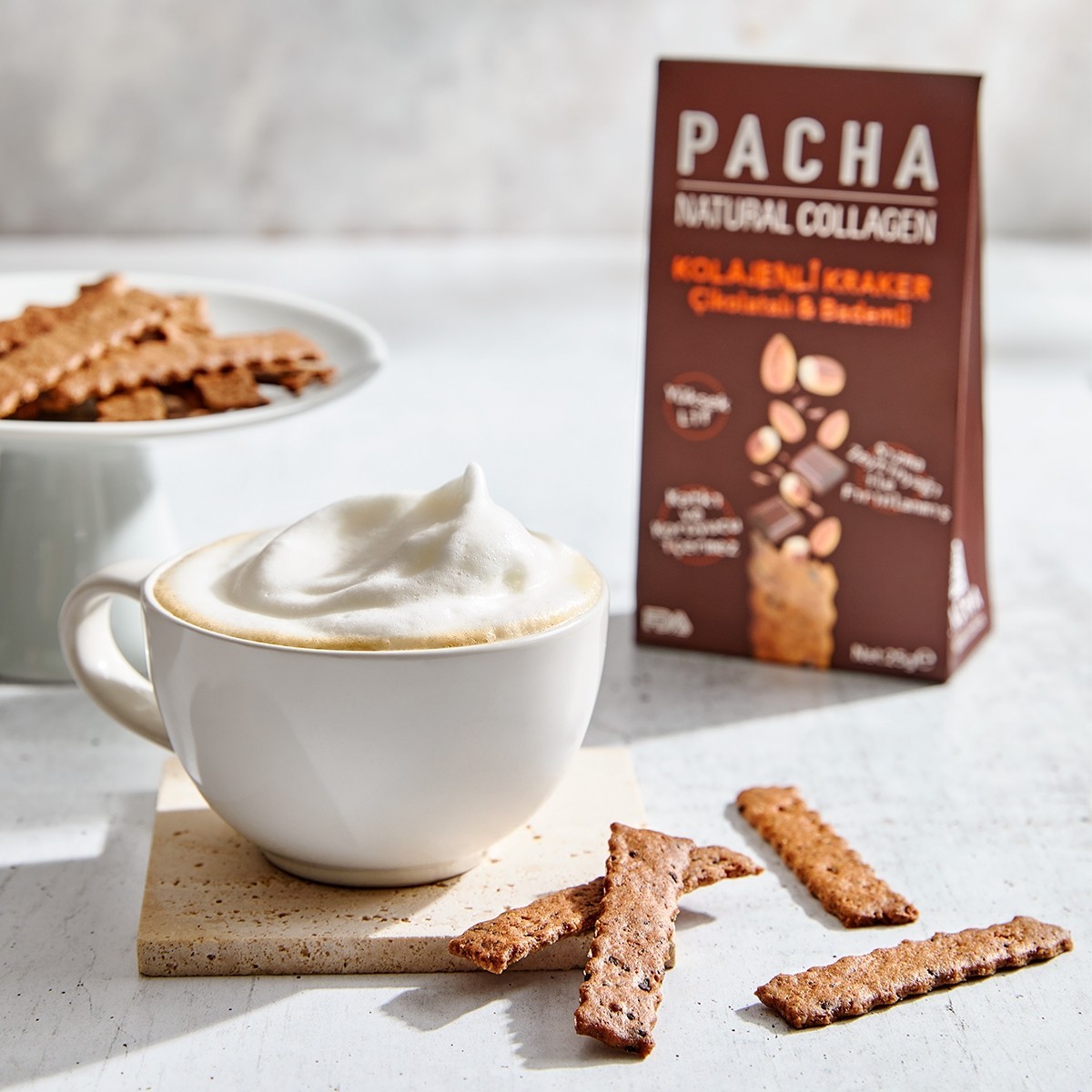 PACHA Natural Collagen Çikolatalı & Bademli Kolajenli Kraker, hem sağlıklı hem de lezzetli bir “functional indulgence” deneyimi sunuyor.